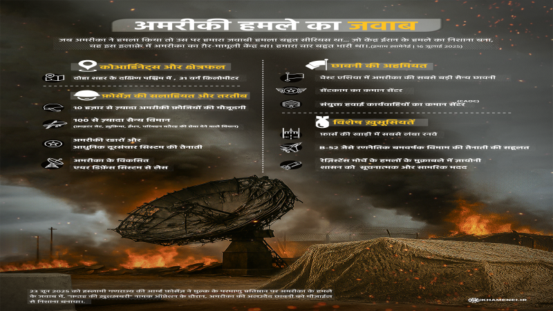 23 जून 2025 को इस्लामी गणराज्य की आर्म्ड फ़ोर्सेज़ ने मुल्क के परमाणु प्रतिष्ठान पर अमरीका के हमले के जवाब में, "फ़तह की ख़ुशख़बरी" नामक ऑप्रेशन के दौरान, अमरीका की अलउदैद छावनी को मीज़ाईल से निशाना बनाया।