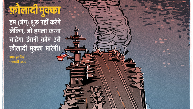 अमरीकी राष्ट्रपति बार बार कह रहा है कि हम ने ईरान की ओर एयरक्राफ़्ट कैरियर भेजा है। हाँ ठीक है, एयरक्राफ़्ट कैरियर जहाज़ एक ख़तरनाक उपकरण है लेकिन उस से ज़्यादा ख़तरनाक वह हथियार है जो उसे समुद्र की गहराई में डुबा सकता है। इमाम ख़ामेनेई 17 फ़रवरी 2026