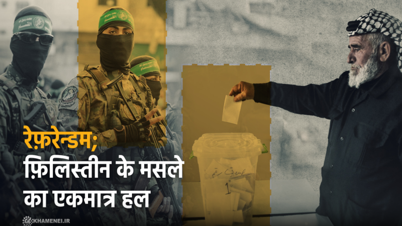 दुनिया में जो भी चाहे मुसलमान हो या ग़ैर मुसलमान अगर फ़िलिस्तीन के वाक़ए की हक़ीक़त को जान लेगा तो क़ाबिज़ शासन के ख़िलाफ़ हो जाएगा, उससे मुक़ाबला करेगा। फ़िलिस्तीनी क़ौम का व्यापक संघर्ष तब तक जारी रहना चाहिए जब तक वे लोग, जिन्होंने फ़िलिस्तीन पर नाजायज़ क़ब्ज़ा कर रखा है, फ़िलिस्तीनी क़ौम की राय के सामने झुक न जाएं।